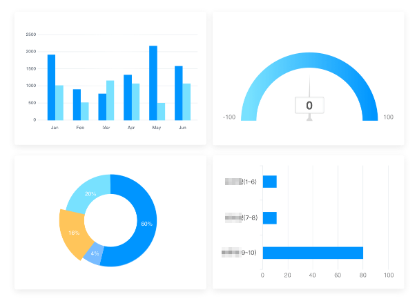 統(tǒng)計(jì)分析:定制數(shù)據(jù)分析報(bào)表,可自定義數(shù)據(jù)分析報(bào)表,使用豐富的圖表呈現(xiàn)頻數(shù)統(tǒng)計(jì)、交叉分析等分析結(jié)果。