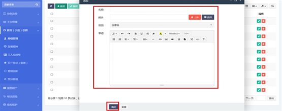 實(shí)訓(xùn)基地中查看已錄入的信息。點(diǎn)擊添加按鈕,輸入標(biāo)題和內(nèi)容。內(nèi)容編輯器中支持文字排版、上傳圖片、插入視頻鏈接、插入表格、給文字加超鏈接等功能。點(diǎn)擊確定按鈕保存內(nèi)容,發(fā)布到前端。點(diǎn)擊編輯按鈕,編輯之前發(fā)布的內(nèi)容后點(diǎn)擊確定按鈕保存內(nèi)容,發(fā)布到前端。支持批量刪除,勾選想要?jiǎng)h除的信息,點(diǎn)擊上方按鈕中的刪除按鈕。